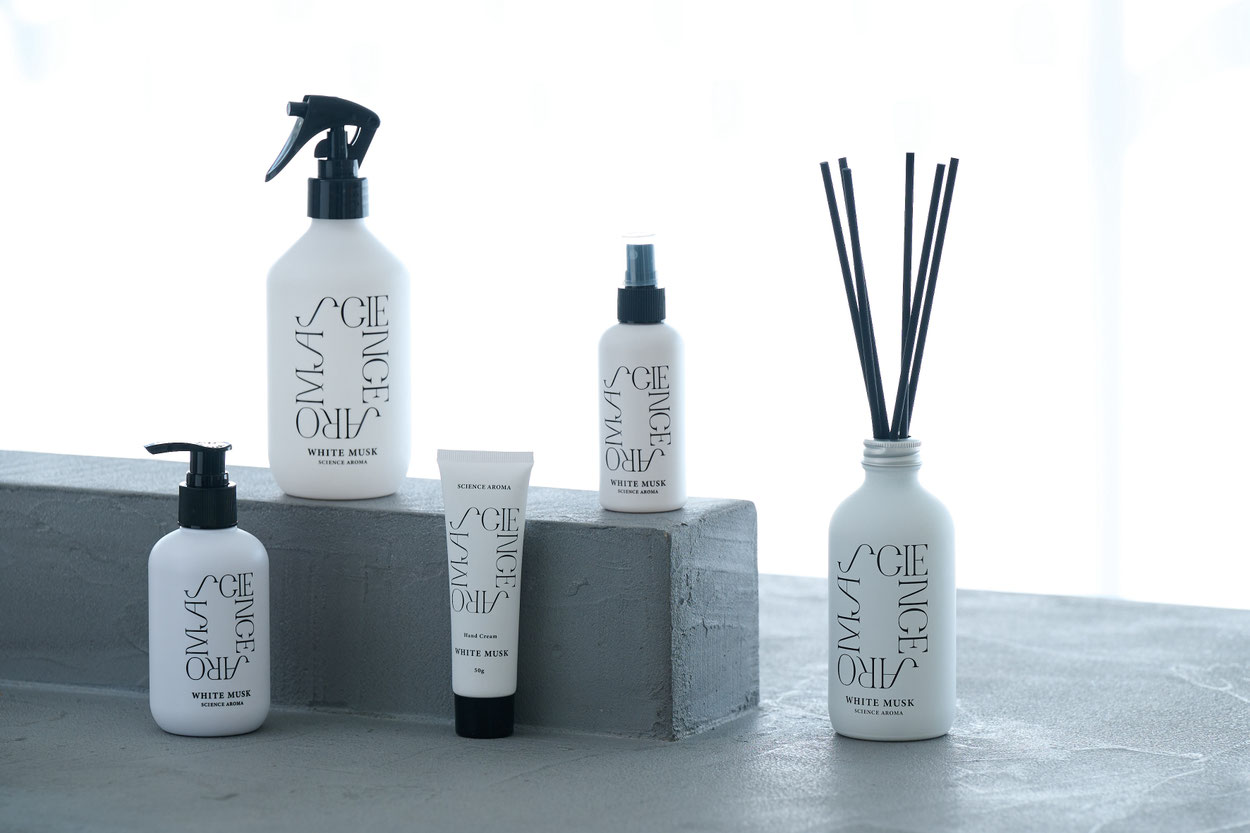香りの効果・効能について科学的にアプローチするブランド『サイエンスアロマ』。第一弾はポピュラーな香りとして人気のあるホワイトムスクを独自のレシピで作成。